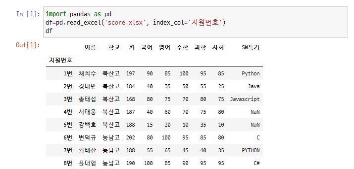 if pd.notnull (lang) - 판다스에 내장된 pd.notnull()함수를 적용했습니다. sw특기의 값이 null이 아니라면