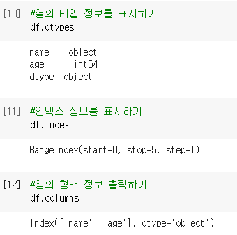 또한 dtype, 즉 열의 타입 대한 정보도 확인할 수 있습니다.