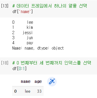 df.['name']을 입력하면 name열에 대한 정보만 나오게 되지요.